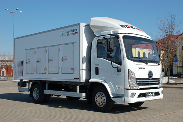Второй автомобиль – рефрижераторный фургон SDAC K7.5 – использовался для перевозки продуктов, требующих соблюдения температурного режима. Кузов объемом 17,86 кубов позволяет разместить 8 палет. Требуемый температурный режим поддерживает холодильная установка с приводом от двигателя. Машина грузоподъемностью 3700 кг оснащенная 3,0-литровым мотором Weichai (144 л. с., 414 Нм) предоставляет оптимальное сочетание для городских и пригородных перевозок.